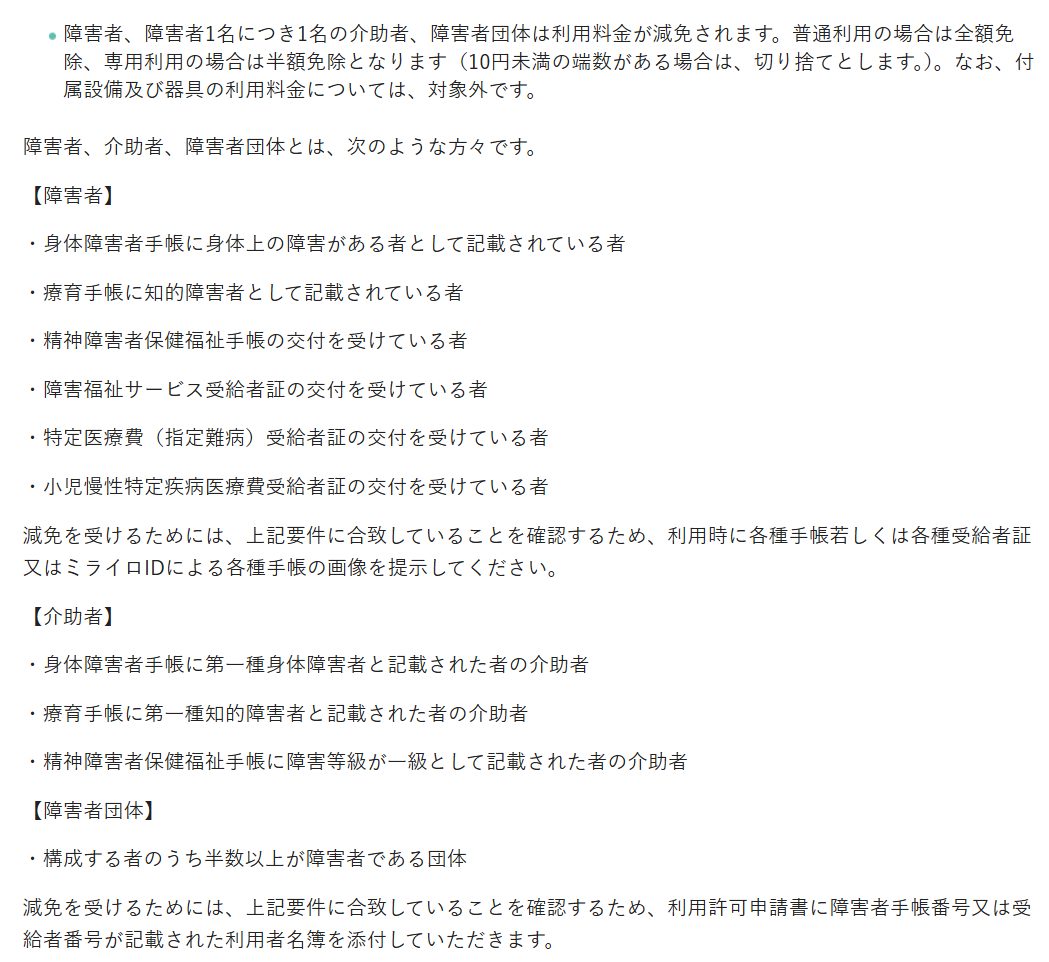 ※障害者手帳をご提示いただけない場合、利用料の免除はできません。